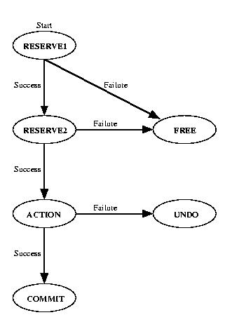 In a perfect operation with no failures, we take the vertical path on the left. If any of the mib modules being acted upon returns an error of any kind, we will branch to the right to one of the failure states where you must clean up and possibly undo what you did in previous steps.